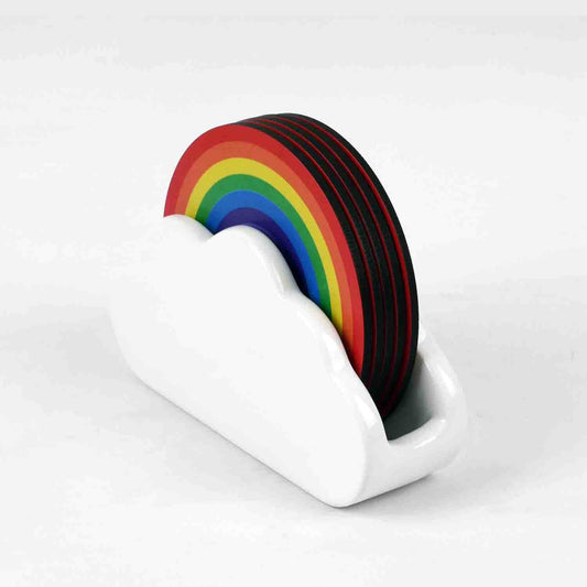 Rainbow Coasters | Wooden Coasters in Ceramic Cloud Holder