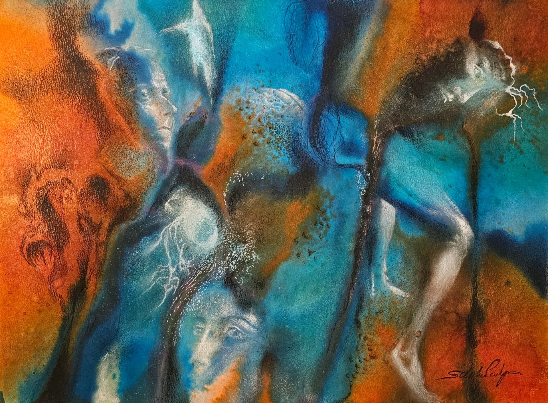 12"x 16" White chalk, graphite and iridescent inks on toned paper by Silvia Cavagnero