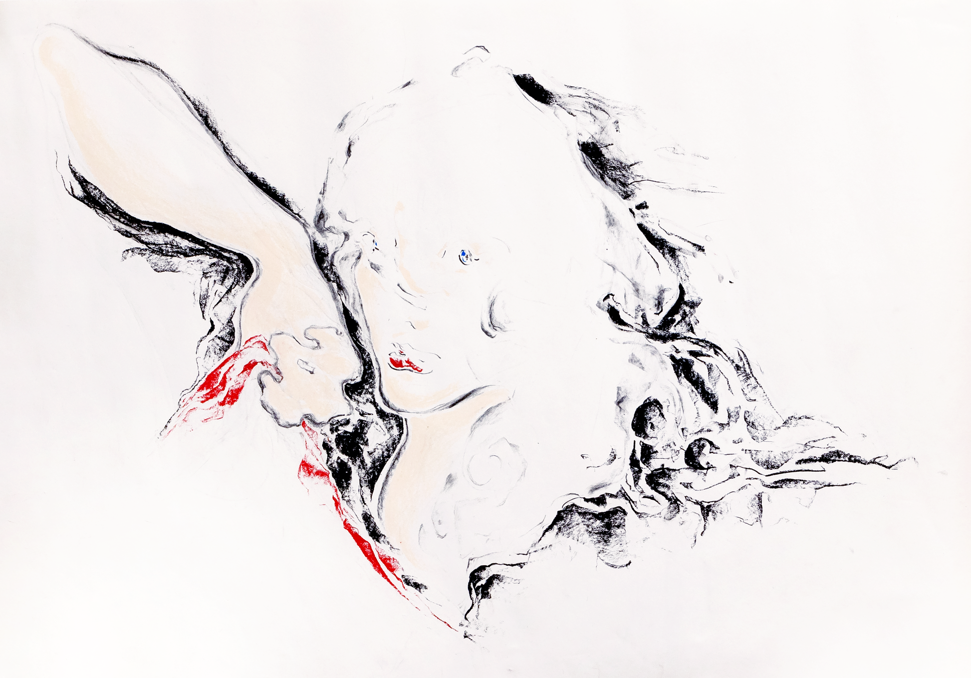 Throughout the history of depicting the body, the female figure has been mistrusted by both artists and audiences to hold as much substance, if any, in comparison to the male figure. The use of the female body in art from allegories to archetypes has significantly damaged our perception of her, separating our understanding of the female form from the reality of her humanity. I seek to defy this narrative by depicting the feminine figure in rare states where she has escaped the internalized performance for the patriarchal gaze, instead existing with a defiant agency and autonomy. For me, this occurs when I work in front of my studio mirror, which I capture through self portraiture. The desire to grasp, understand, and abstract anatomy to its utmost nuance guides my line and drive throughout the entire modeling process. I use charcoal and chalk pastel to weave the form of the body in and out of the ground of the paper, creating transient figures with a lightness that matches the speed and impulsive nature of my work process. By simultaneously being the model and the artist, I reflect the obsessive gaze with which I study myself onto the viewer, placing them under my stare, but also in the position of experiencing the intensity and urgency of the modeling relationship from both sides, which has enabled me to learn to pose my body outside the cliches imposed onto the feminine form. Through my work, I admit viewers into my modeling space to remind them of the unique vulnerability and power of attunement to one’s body, and to therefore experience my female figures as present and confrontational rather than existing for display.