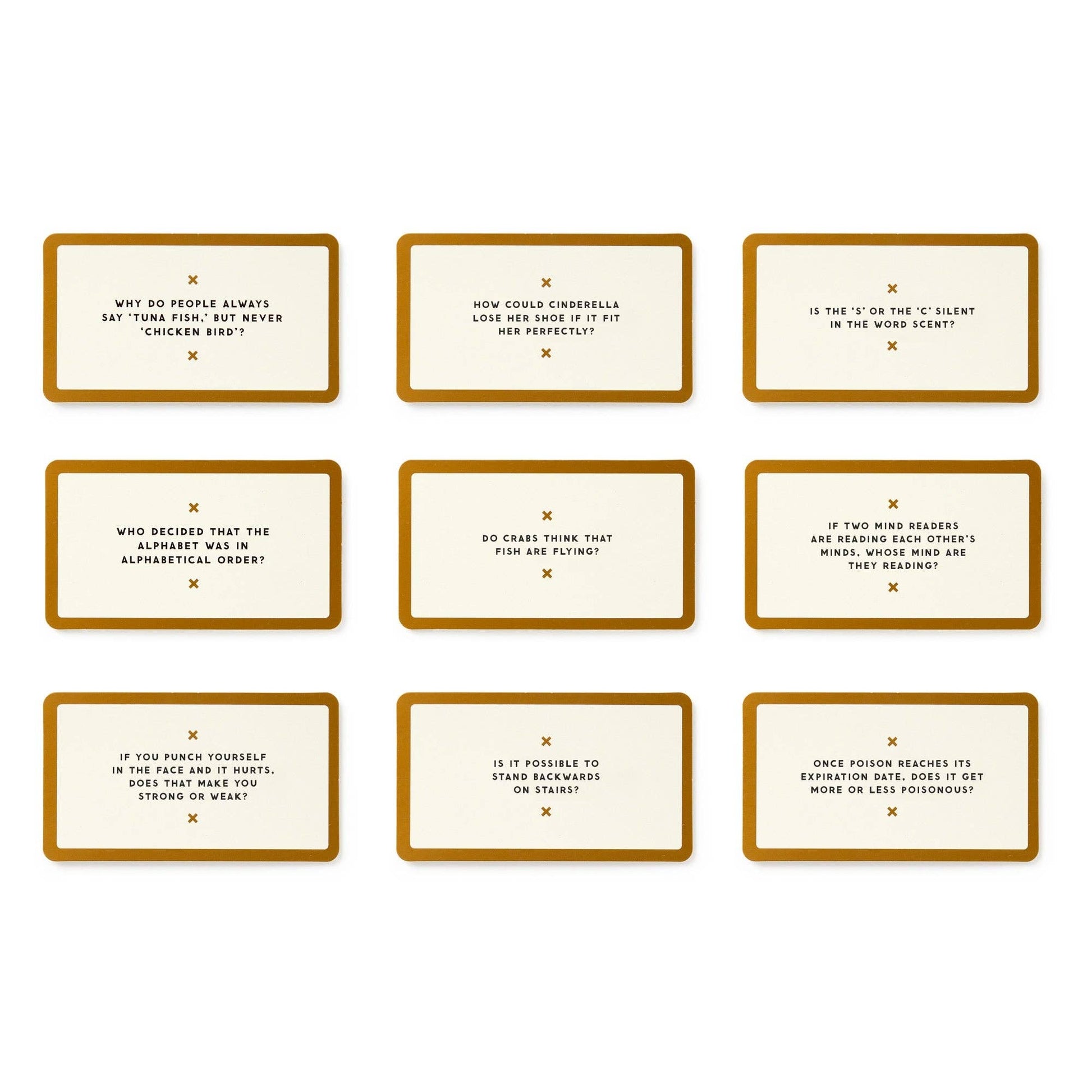 You don’t have to be high to ponder some of life’s most significant, thought-provoking questions–you know, important stuff like ‘do you think popcorn is a vegetable?’ So inside you’ll find 200 hilarious, yet profoundly ‘deep’ topics that are actually fun to talk about. Includes 200 questions cards and some rules to turn it all into a game (if you want to, that is).