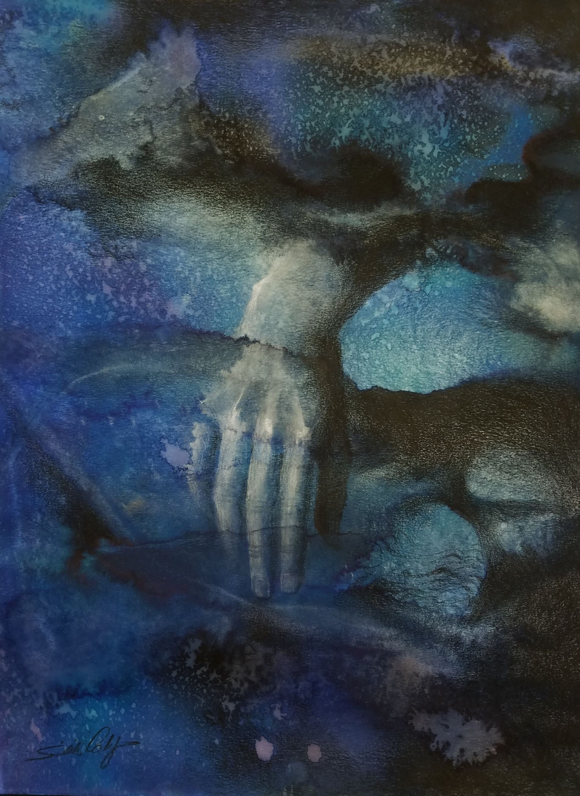12"x 16” White chalk, graphite and iridescent inks on toned paper by Silvia Cavagnero