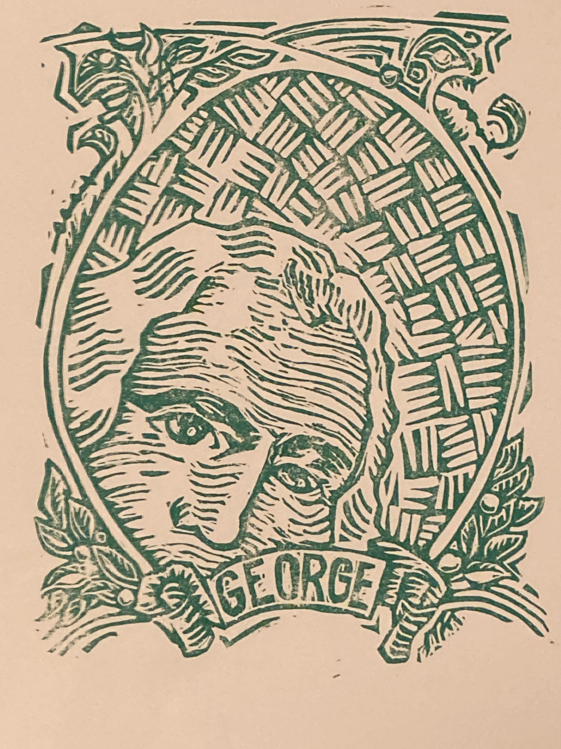 Elusive George 8" x 10" Print 13"19" frame Linocut by Gary Karl Nauman