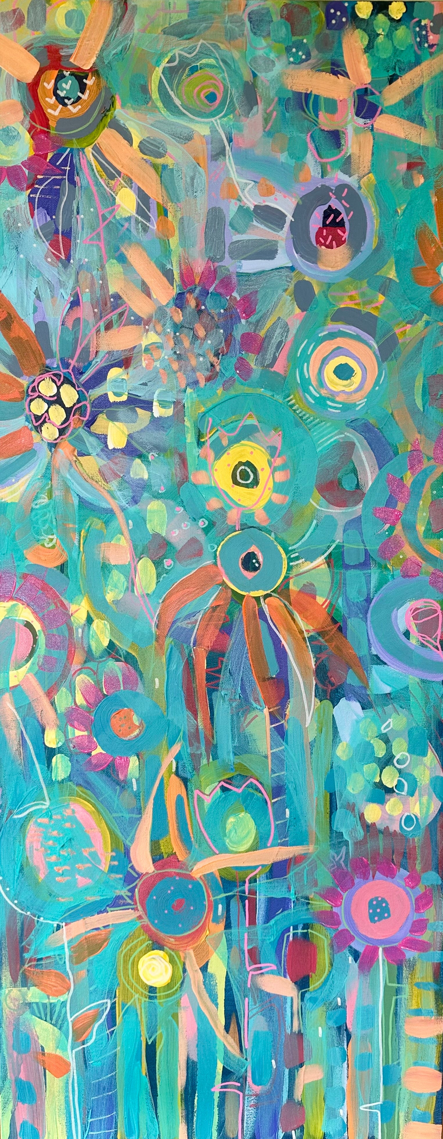 I create paintings using acrylic on canvas. I first want the viewer to notice my color palette and images secondary. I’m inspired by nature and found objects around me. I enjoy finding balance using different color combinations and patterns to keep the viewers eyes moving throughout my work.