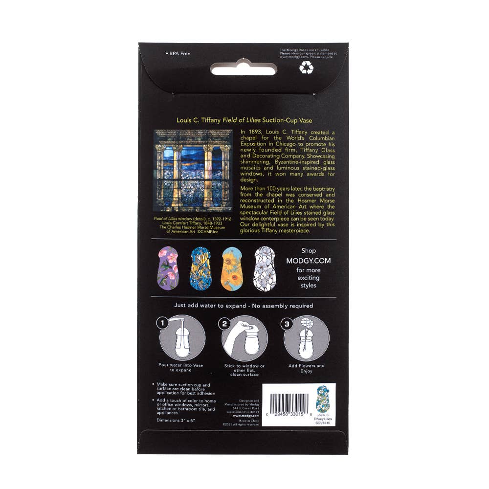 Modgy Suction Cup Vases start out flat and expand with water. With the added advantage of a suction cup, Modgy expandable and collapsible vases will adhere to any clean and flat surface in your home, office, hotel, car, RV or any other place you can imagine.